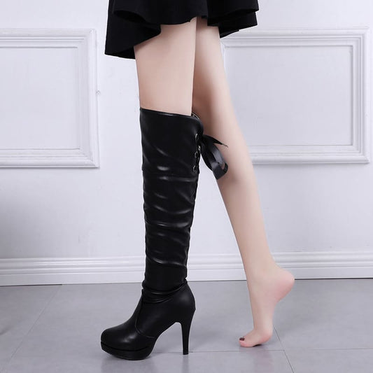 Ou 12x de R$ 31,82Bota Feminina Cano Longo Amarração Cruzada