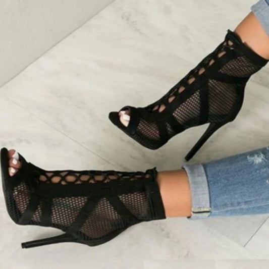 Ou 12x de R$ 35,47Salto Botas De Malha Respirável Rendas