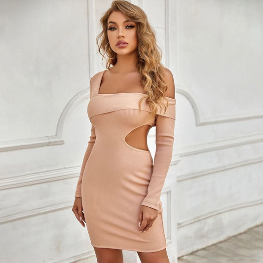 Ou 12x de R$ 49,88Vestido Curto de Festa Champanhe Ombro a Ombro Fernanda