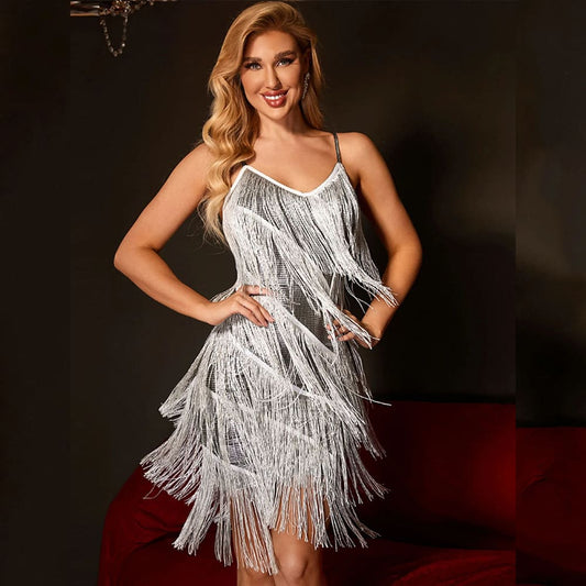 Ou 12x de R$ 49,18EsgotadoVestido Curto de Festa Franjas Prata Mirela