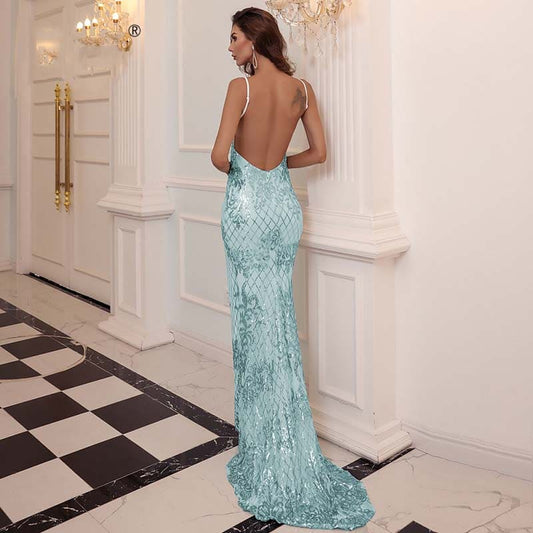 Ou 12x de R$ 77,53Vestido De Festa Longo Azul Jessie