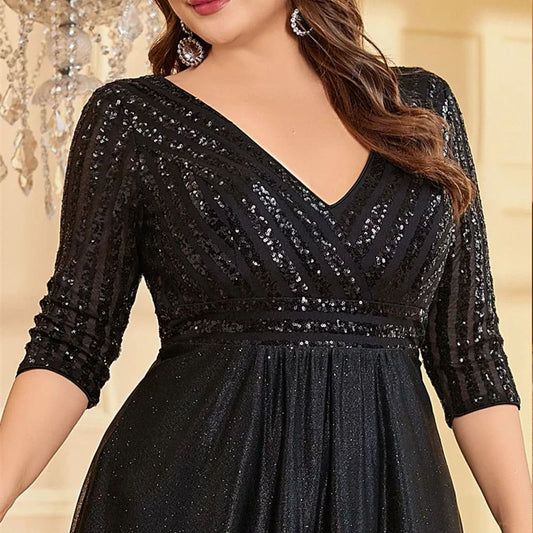 Ou 12x de R$ 76,57EsgotadoVestido Longo de Festa Preto Paetê Luana