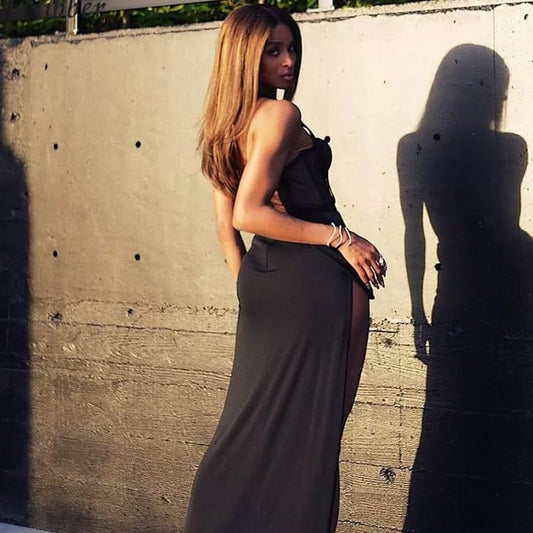Ou 12x de R$ 29,65Vestido Longo Aberto Na Perna Allana